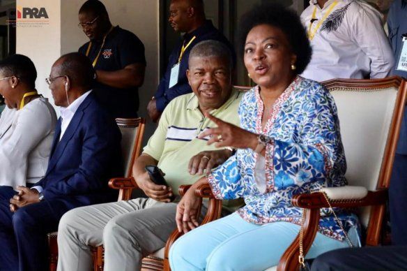 Ladeado pela Primeira Dama, Ana Dias Lourenço, o mais alto mandatário na Nação faz-se ainda acompanhar da Ministra da Juventude e Desportos, Palmira Barbosa, do presidente da Federação Angolana de Futebol, Artur de Almeida e outras figuras do desporto nacional.